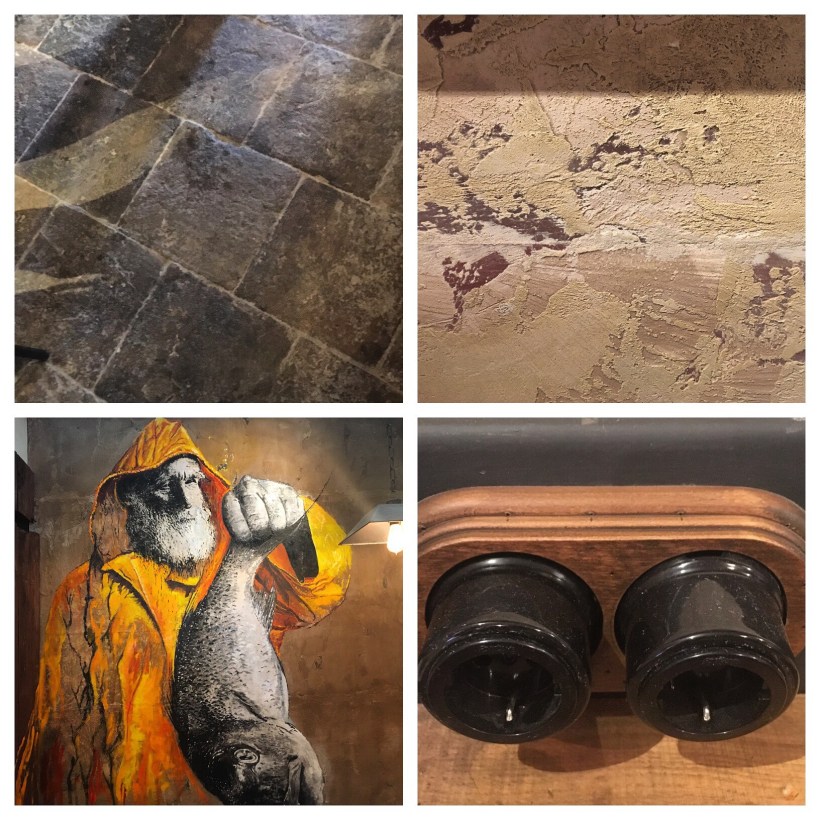 The front of the premises is a spacious pinxo bar opening onto Calle Santo Tomas, with a terrace facing the Archivos, and the bar itself on one side, with a very appetising array of Basque style pinxos so typical in Bilbao, but something of a novelty in Seville. We got to try a few as an appetiser, my favourite being the chistorras (small spicy sausages).
